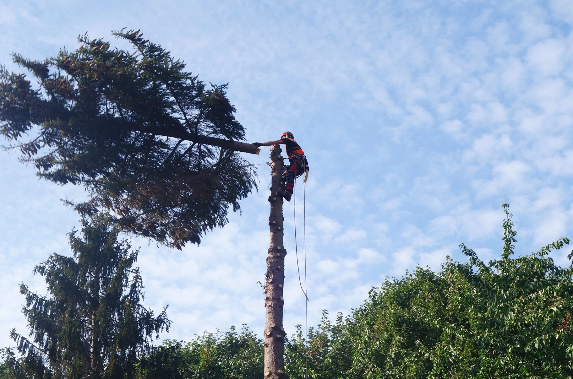 Viele Faktoren, wie sich verändernde Standortbedingungen, Pilzbefall oder Trockenheit können die Verkehrssicherheit des Baumes gefährden. In einigen Fällen ist ein Erhalt des Baumes nicht möglich. Bis auf Ausnahmen werden Fällungen zwischen dem 1. Oktober und 28./29. Februar durchgeführt, um der Bedingungen der Vogelschutzzeit gerecht zu bleiben. Wir fällen für Sie fachkundig und sicher auch an unzugänglichem Gelände und auf engstem Raum. Durch anspruchsvolle Riggingtechniken bringen wir einzelne Äste, Kronen- und Stammteile sicher und schonend zu Boden, ohne das Stammumfeld dabei zu beschädigen. Anfallender Grünschnitt, Äste und Stammholz kann von uns fachgerecht entsorgt werden oder auf Wunsch als Feuerholz oder Ähnlichem zurückbleiben. Wir verlassen die Baustelle stets besenrein.